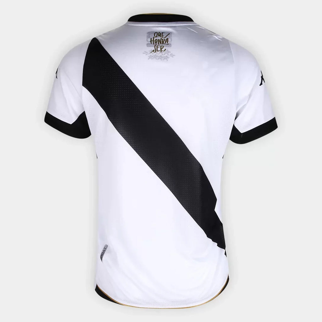 Que honra ser! Saiba eu sou vascaíno, muito prazer! Chegou o momento de torcer com todo orgulho e amor Cruzmaltino com a Camisa Vasco da Gama II 23/24 s/n° Jogador Kappa Feminina! Predominantemente branca e com a faixa transversal preta, a peça apresenta manga com detalhe em preto, gola V com contorno dourado e barra traseira arredondada com recorte contrastante. A frase “Que Honra Ser” aparece estilizada em dourada na nuca. Por fim, o composto tecnológico Hidroway Fabric garante absorção de umidade, secagem rápida, excelente caimento e conforto. Torça, cante e apoie o Gigante da Colina até o fim com essa camisa do Vasco feminina! Compre já!