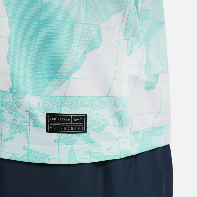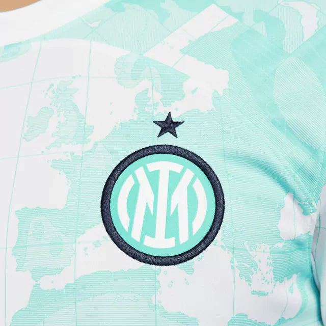 A camisa reserva da Inter de Milão para 2022-2023 traz o novo template da Nike para a temporada, e faz referência às origens do time, que foi o pioneiro em contar com estrangeiros na Itália e leva isso até em seu nome. Ela é predominantemente turquesa, em tons diferentes, que formam o mapa mundi, por todo o corpo.